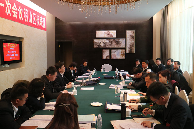 1月8日上午,本溪市第十六届人民代表大会第一次会议在市文化宫隆重开幕。在8日、9日的分组讨论中,明山区代表团54名代表,分3个代表小组对政府工作报告、计划报告和预算报告进行了审议。在审议中,代表们一致认为田树槐市长所作的政府工作报告主题鲜明,内涵丰富,目标明确,催人奋进。报告用数据和事实说话,翔实地阐述了过去五年本溪经济社会取得的巨大成就,特别是去年以来,全市顶住经济下行的巨大压力,集中精力谋发展、抓项目、促改革,各项重点工作,包括主城区环境综合整治,项目年活动,“三去一降一补”,优化营商环境建设,生态环境建设扎实推进,精准扶贫、棚户区改造等民生实事全部完成,得到社会各界的充分认可和高度赞扬。