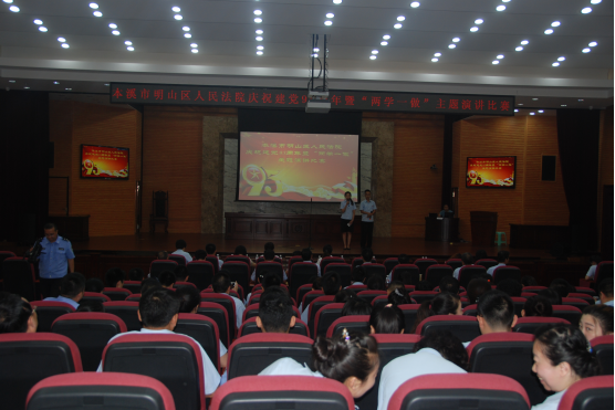 7月1日下午2点整,本溪市明山区人民法院庆祝建党95周年暨“两学一做”主题演讲比赛在第一法庭拉开序幕,来至于我院各庭室的十三名选手参加比赛。