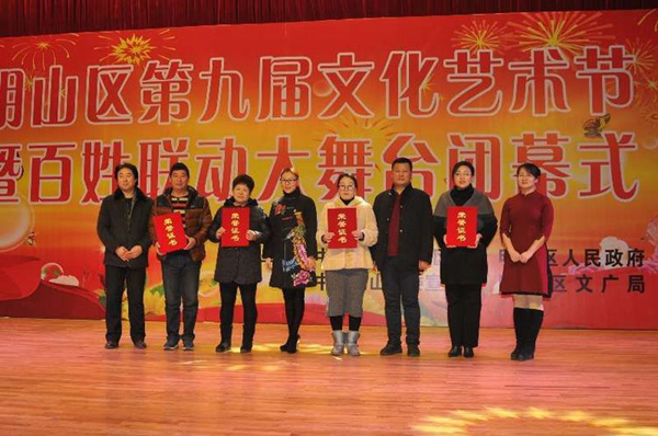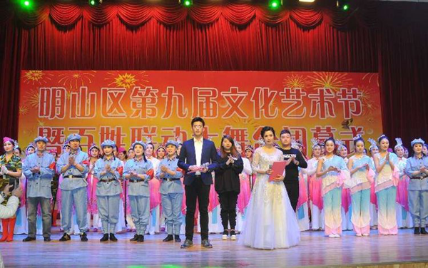 —“2017明山区群众文化艺术节”暨颁奖晚会大放异彩 精彩荟萃,彰显艺术的魅力;曲艺流芳,浸透传承的风采。12月26日下午,“2017明山区群众文化艺术节”暨颁奖典礼在明山区文广局多功能厅成功举行。 本次活动由中共明山区委、区政府主办,中共明山区委宣传部、区文广局承办,是明山区宣传学习贯彻党的十九大精神、进一步丰富广大人民群众业余文化生活、鼓励优秀的群众文艺创作团体和表演人才而打造的一场具有地方特色的大型文艺汇演。在渺渺的烟雾和绚丽的灯光中,本溪市文广局、市群众艺术馆、明山区委区政府以及各街道办事处有关领导和辖区老百姓们共同观看了整场演出。 闭幕式上还设置了现场颁奖环节,为在本届艺术节系列活动中表现突出的团体和有突出贡献的基层文化服务单位进行表彰。明山区副区长何俊在闭幕式上致辞,她讲到,明山区始终坚持开展多样化的群众文化活动,在活跃基层文化,增进党群关系等方面成效显著。既营造了“友好和谐、特色鲜明”的文化氛围,又推进了民族文化的传承与创新。此外,她对本次艺术节中涌现出的优秀作品给予了充分的肯定,高度的赞扬了我区在文化艺术传承和创新领域中所取得的丰硕成果。 演出节目内容丰富、形式多样,有民族舞、诗朗诵、东北秧歌、寸跷、说唱表演、小合唱等。伴随着激情的乐曲,开场舞《中国范儿》如同雨后春雷,拉开了突显明山人民精神面貌和热爱祖国伟大情怀的壮丽篇章;说唱表演《明山整治就是好》歌颂了明山人为进一步打造优雅的宜居环境,改善老旧小区生态环境的喜人成果;原创配乐诗朗诵《献给十九大的秋天》讲述了明山儿女,在党的十九大胜利召开后“不忘初心、同心同德、团结奋进”的昂扬斗志。 十二个节目个个精彩纷呈,高潮迭起,一次次博得了现场观众的掌声与共鸣。整场演出,既表现了明山经济发展的丰硕成果,也展现了明山百姓多才多艺的精神风貌,更体现了明山人为庆贺党的十九大的胜利召开,而激励自己“不忘初心,牢记使命,凝心聚力”再创明山新辉煌的美好心愿!